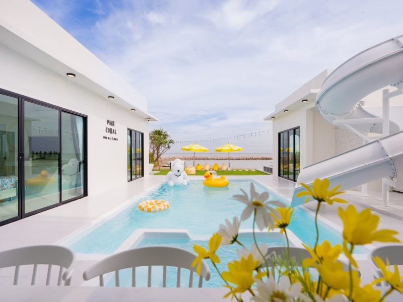 พูลวิลล่าชะอำติดทะเล บ้าน VG-Coral A 5 ห้องนอน 🌊 พูลวิลล่าติดทะเล ทะเลเล่นน้ำได้ มาพร้อม สไลเดอร์ โต๊ะพูล เครื่องเสียง JBL