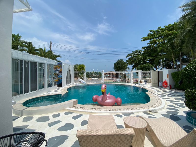 พูลวิลล่าพัทยาติดทะเล บ้าน VIP-Happy santoriny beachfront poolvilla 11 ห้องนอน – บ้านสไตล์โมเดิร์นติดทะเล (น้ำทะเลสะอาดเล่นน้ำได้) ชั้นดาดฟ้าสามารถจัดงานเลี้ยงได้